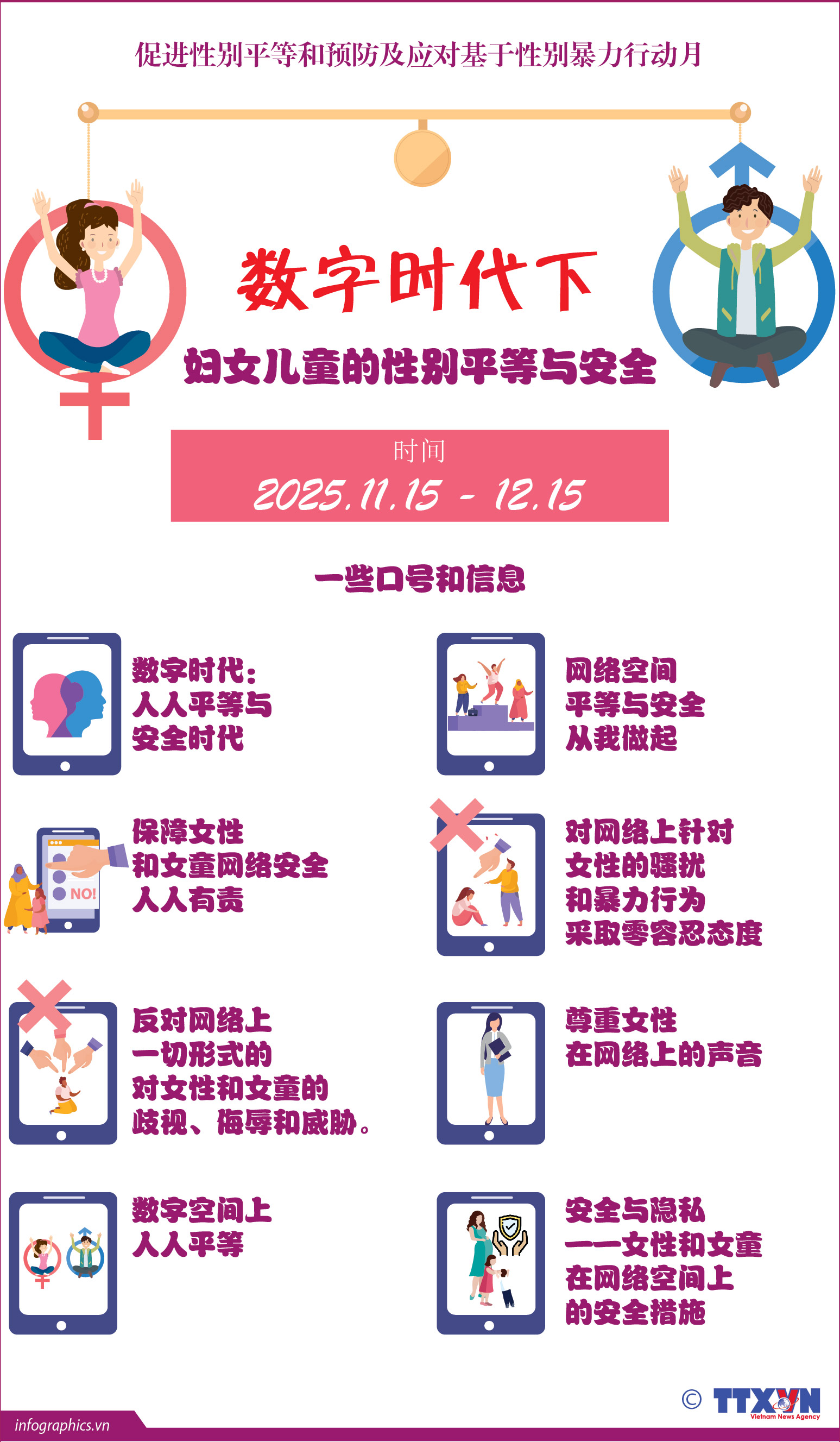 2025年性别平等及预防和应对基于性别的暴力行为行动月的主题是“数字时代下妇女儿童的性别平等与安全”。该行动月旨在加强对自我保护和自我预防知识与技能的教育,尤其是在使用网络平台时面临的风险;强化相关机构和组织的责任;促进对妇女儿童遭受暴力和虐待案件的预防、发现、控制和及时处理。