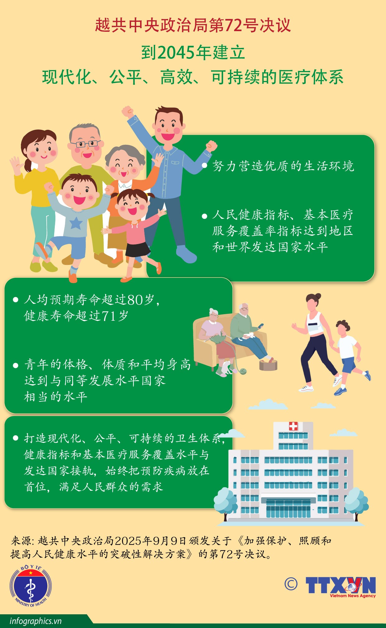 越共中央总书记苏林近日代表中央政治局签发关于加强关心、维护和改善人民群众健康水平的若干突破性措施的第72号决议(72-NQ/TW)。